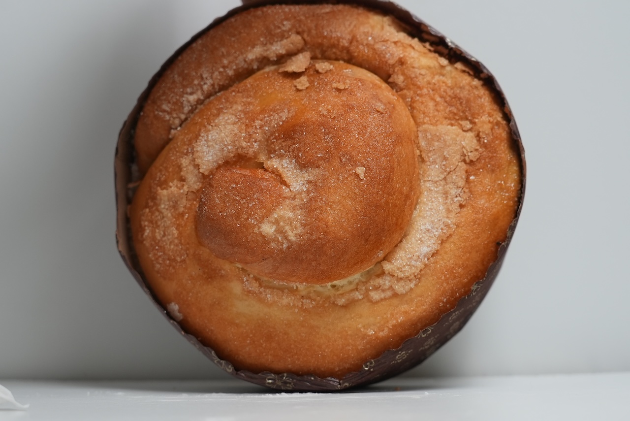 con un ripieno di noci, uvetta, pinoli, zucchero e liquore.